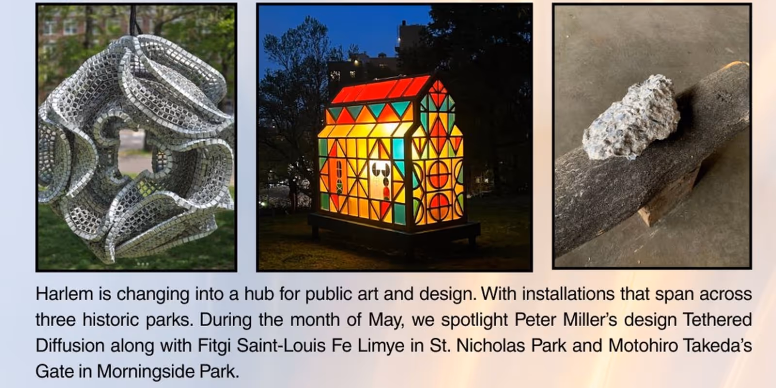 Savona Bailey-McClain currently lives and works in New York City. She is an independent curator and producer. The range of McClain’s practice has included sculpture, drawings, performance, sound, and mixed media. McClain is the Executive Director & Chief Curator for The West Harlem Art Fund, Inc. an eighteen year old public art organization and curatorial collective serving neighborhoods around the City. Her public art installations have been seen in the New York Times, Art Daily, Artnet, Los Angeles Times, and Huffington Post among others. McClain has installed works in Times Square, DUMBO, Soho, Governors Island and Harlem. Noted works include The H in Harlem, Counting Sheep, Story Piles, East River Flows and Loosely Coupled. McClain is a member of Arttable and radio host/producer for State of the Arts NYC.